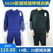 Customized navy blue winter physical clothing thickened warm fleece physical clothing sweater set
