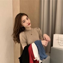 Net red t-shirt female ins super fire slim-fit knitted short-sleeved bottoming shirt with new sexy bubble sleeve top
