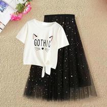 2021 new children's clothing summer girls suit skirt fashionable super-western style student middle school children long-sleeved sunscreen two-piece suit