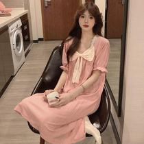 New Korean summer pajamas women's summer short-sleeved long cute girls night dress loose plus size home clothes can be worn outside