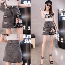 Denim short skirt skirt female spring and summer Korean version of high waist fashion thin lace stitching diamond-encrusted A-line skirt short skirt female