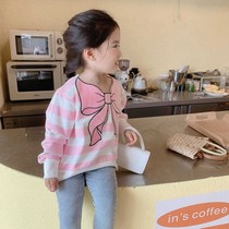 Children's clothing girls 'autumn striped sweater Western style 2021 new children's female baby Korean version of the fashionable top children's clothing girls' autumn striped sweater Western style 2021 new children's female baby Korean version of the fashionable top