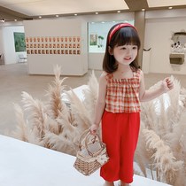 Girls summer suit 2021 new children's Korean version of the suspender anti-mosquito wide leg pants two-piece set of baby foreign clothes