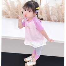 Net red girls summer suit 2021 new children's foreign style fashionable two-piece set 1-year-old children 3 female baby summer clothes
