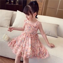 Girls Chiffon dress 2021 new summer floral princess dress thin section net red foreign style summer girls skirt