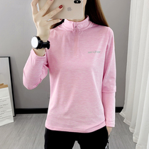 Beshy and new collar long sleeve T-shirt female autumn slim rushed stretch stretch fast sports base shirt fashion wild man