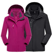 Outdoor jackets for men and women in autumn and winter three-in-one detachable two-piece plus velvet thickened warm waterproof mountaineering jacket