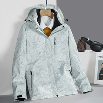 Winter outdoor jacket men and women three-in-one plus velvet thickened detachable waterproof mountaineering suit Tide brand Korean jacket