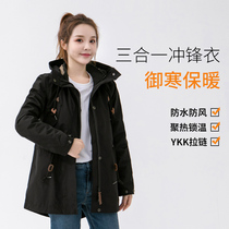 (Clearance Special) Autumn and winter long outdoor three-in-one assault clothing Waterproof warm mountaineering jacket women