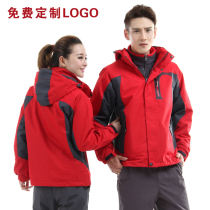 Custom clothes for men and women overalls printing logo printing three-in-one detachable plus velvet Waterproof warm jacket autumn