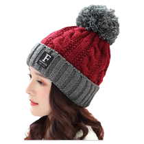 Winter middle-aged mother simple woolen hat knitted woolen hat plus velvet thick hat for women red warm double-layer cotton hat