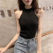 Summer sexy neck with camisole vest female summer wear beautiful back slim sleeveless knitted base white top