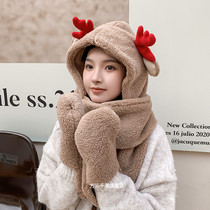 Plush deer ears hat scarf gloves one female autumn and winter sweet cute Korean lamb velvet parent-child scarf
