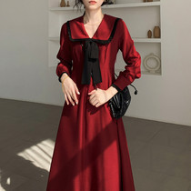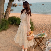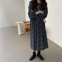 Long skirt thin and high temperament French niche floral dress autumn long gentle salt line Japanese skirt