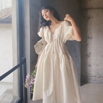 Skirt Women's Summer 2021 New Korean V Collar Bubble Sleeve Dress Casual Long Style Tone Dress Career Interview