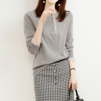 Baku Sen plus velvet thick 2021 autumn and winter New Wild warm lace pearl buttons lantern sleeve female