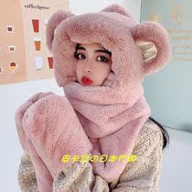 Japanese bear hat parent-child 2021 net red autumn winter Joker scarf scarf one body warm cute fluffy hat