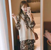 2021 autumn and winter New College style floral dress Lady temperament wear knit sweater vest two-piece suit