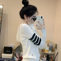 Lazy wind soft glutinous four bar sweater sweater autumn 2022 new TB white loose knitting cap coat
