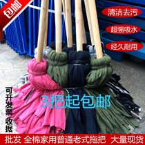 Pure cotton thread mop wooden pole property Hotel mop water absorbent large flat flat ordinary household cotton yarn vintage floor mop