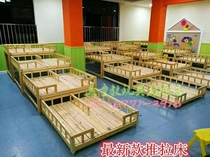 Kindergarten children's single bed double bunk bed stacking bed push-pull bed early education baby nap log solid wood bed
