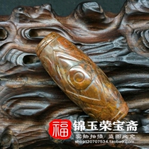 Raw ore Old goods Old agate (eight-eyed dzi) treasure old material Dragon pattern pendant pendant old beads