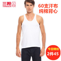Three gun men's vest sleeveless cotton Xinjiang stretch cotton sports breathable top round neck base underwear 2pcs