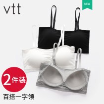 Mitto one-character collar flat-mouth sling female inner vest long thin belt chest pad bra one-piece bottoming coat