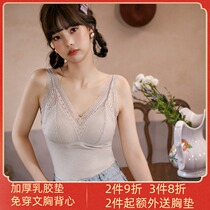Camelette Vest Women's belt chest cushion small chest thickened without steel ring underwear with no bra lace vest autumn