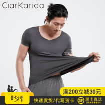 Men's solid color short-sleeved T-shirt men's V-neck Modal incognito thin section summer ice silk feeling base shirt underwear upper body tide