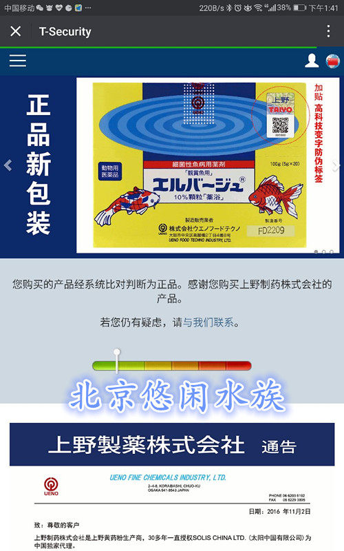 Japan Ueno yellow powder with anti-counterfeiting code new packaging goldfish Koi cold water fish White spot white film water mildew meat fish medicine
