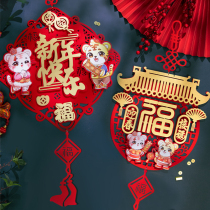 New year decorations door hanging Chinese New Year pendant 2022 home living room wall blessing character hanging decoration Tiger year Spring Festival scene layout