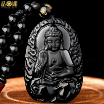 Jinghu obsidian twelve Zodiac life Buddha patron Saint necklace female big day tat male Amulet pendant