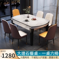 Light luxury rock plate dining table and chair combination Modern simple solid wood household small apartment telescopic round table folding dining table Price: $465.00 Price: $350.0823232 Transactions