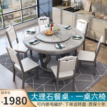 Marble dining table and chair combination Modern simple light luxury rock board round solid wood household induction cooker round table with turntable Price: $414.79 Price: $332.2323232 Transactions