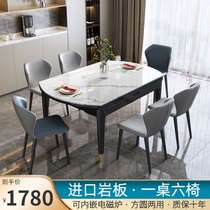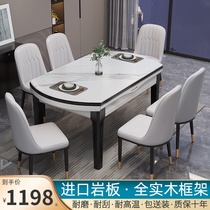 Italian bright rock plate dining table and chair combination Modern simple light luxury solid wood round induction cooker household telescopic dining table Price: $309.92 Price: $265.2919357 Transactions