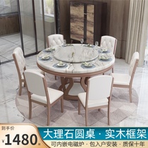 Marble dining table and chair combination Modern simple light luxury hotel round solid wood household induction cooker round table with turntable Price: $414.79 Price: $332.2323114 Transactions