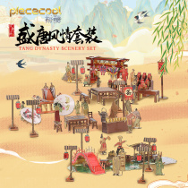 Cool Datang Street 12 pieces of metal assembly model wind full building Rouge shop Yihongyuan shop Yihongyuan 3D puzzle